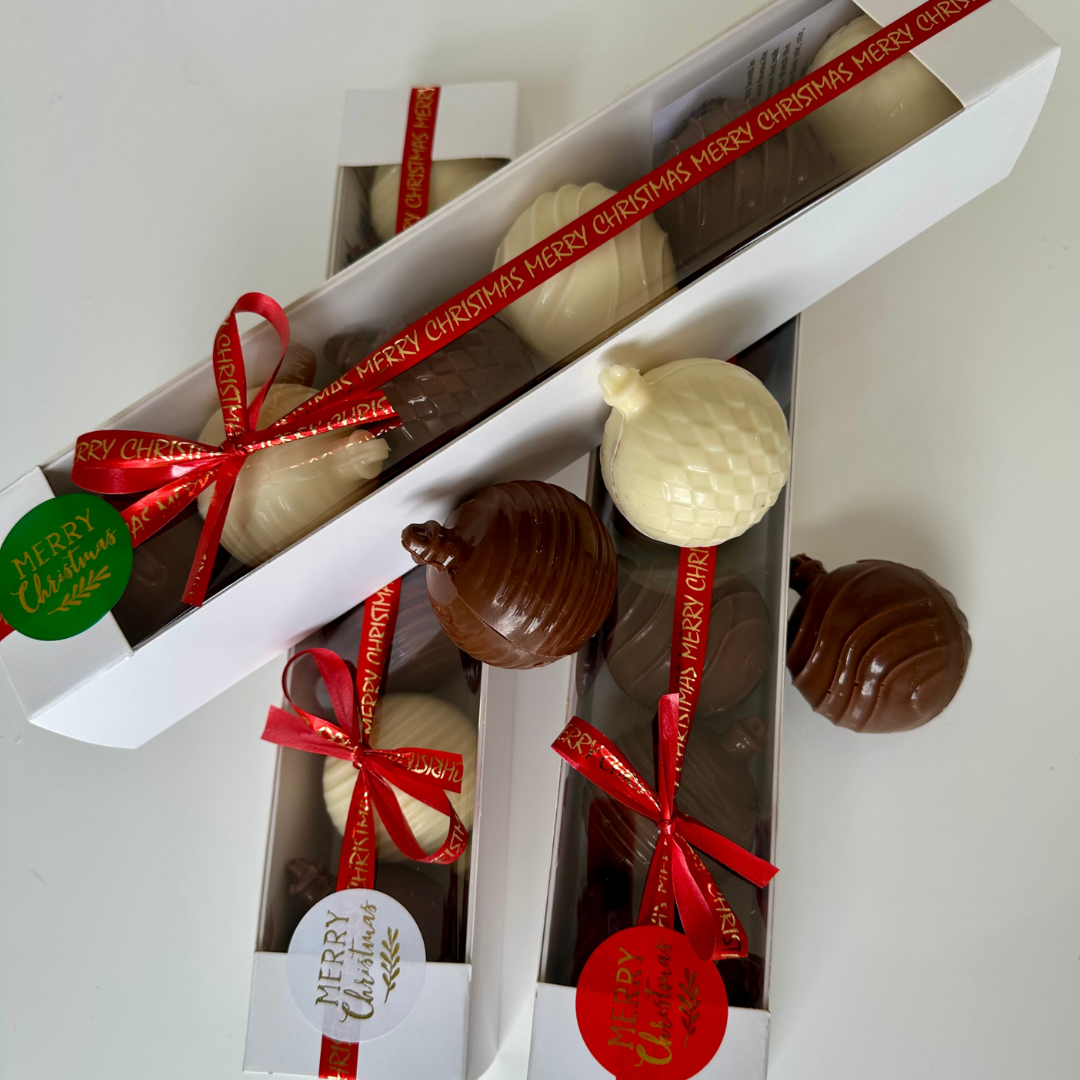 A seasonal pack of six Belgian Callebaut hot chocolate bombs in a Christmas bauble shape. Pop in your favourite mug, pour hot milk over the top and watch the magic happen.