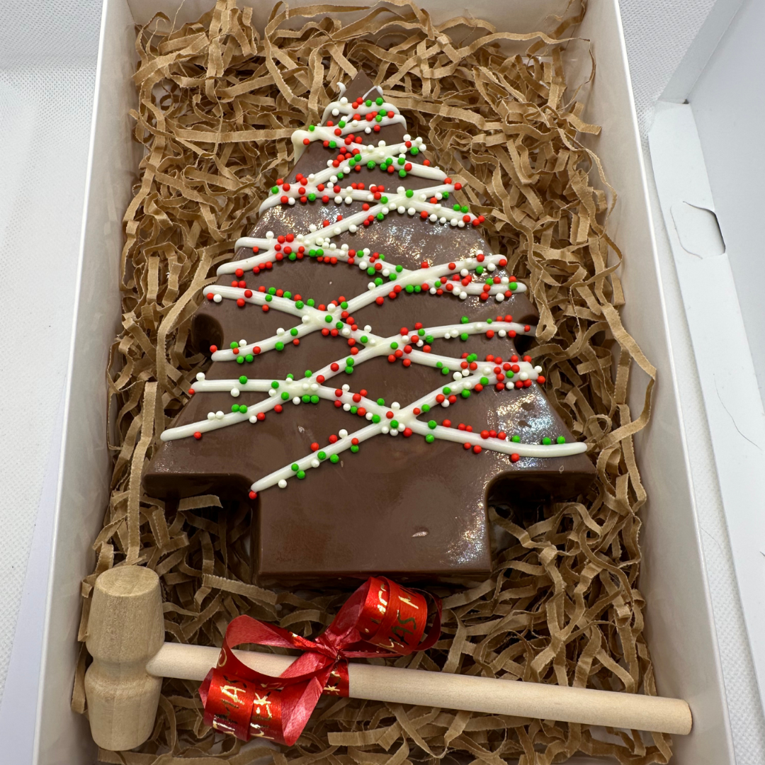 Deck the halls and smash up the Christmas tree with this seasonal Belgian Callebaut milk chocolate tree-shaped shell, with a choice of naught (chocolate dicks) or nice (Lindt wrapped chocolates, or Ferrero Rocher) filling. When you're ready, smash open to enjoy the surprise tasty treats within!
